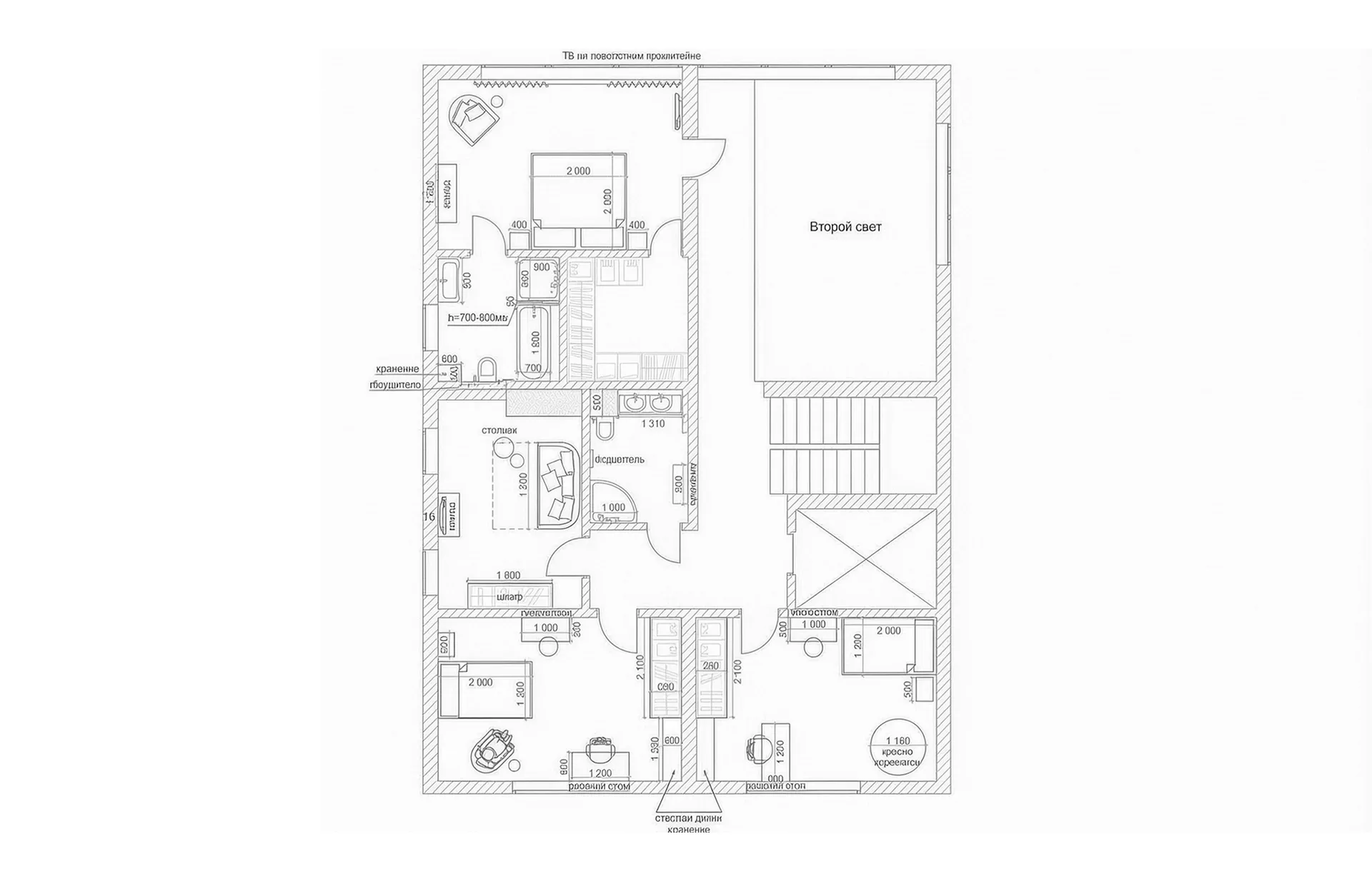 Семья с двумя подростками устала от ощущения «тяжёлого» загородного дома, где вещи и мебель забирают на себя всё пространство. Им нужен был светлый, воздушный интерьер, в котором второй свет не теряется за мебелью, а становится сердцем дома, и где каждому комфортно жить, не спотыкаясь взглядом о визуальный шум.